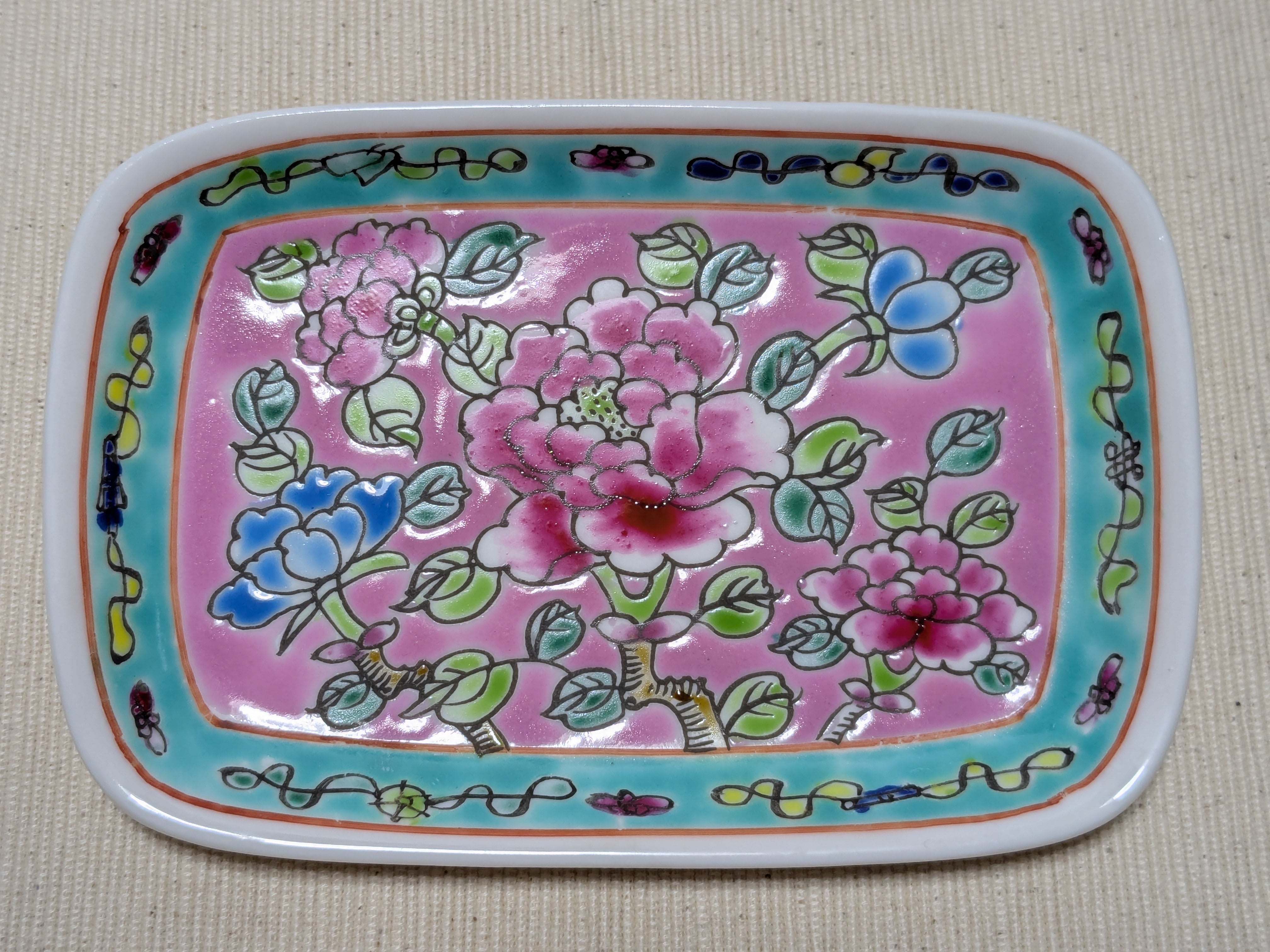限定1点!【プラナカン陶器/長方形プレート】フラワーモチーフ